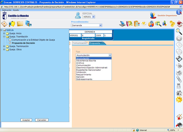 2.5 REGISTRAR PROPUESTA DE ACUERDO. UTILIDAD: Este proceso permite registrar una propuesta de resolución de la queja del consumidor. ACCESO AL PROCESO: Se accede al proceso mediante el árbol de procesos que aparece en el menú de procesos después de la realización de la búsqueda de expedientes.
