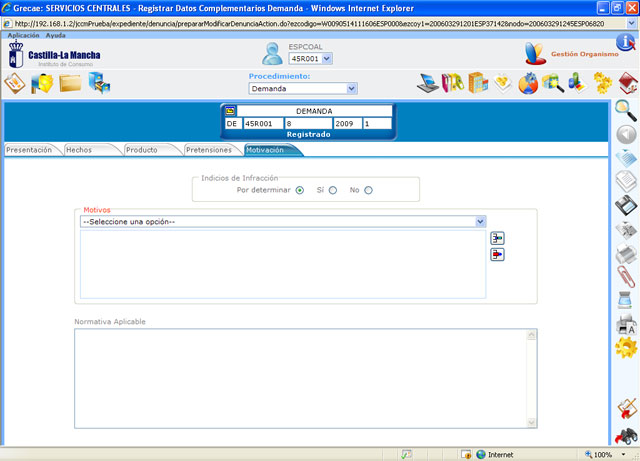 También podrá introducir directamente la petición deseada o las observaciones que considere oportunas para la petición solicitada. Los motivos de la Demanda se registran en la pestaña Motivación.