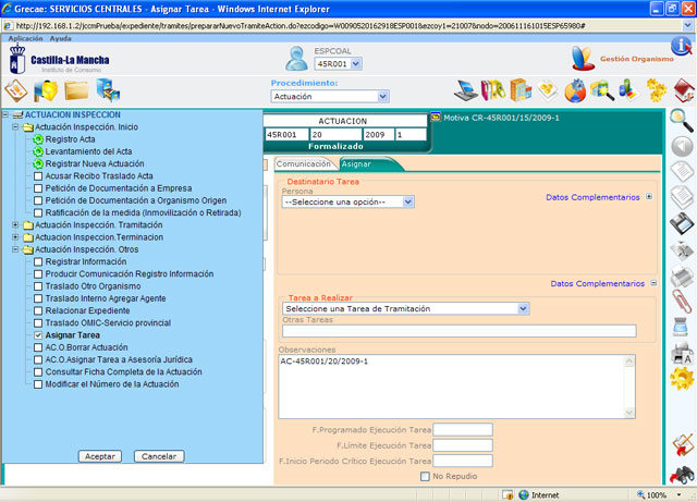 2.1.18 ASIGNAR TAREA. UTILIDAD: Este proceso permite asignar una tarea a un agente. ACCESO AL PROCESO: Se accede al proceso mediante el árbol de procesos que aparece en el menú de procesos después de la realización de la búsqueda de expedientes.